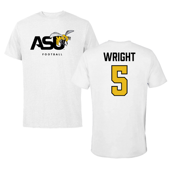 Alabama State University Football White ASU Tee - #5 Taco Wright