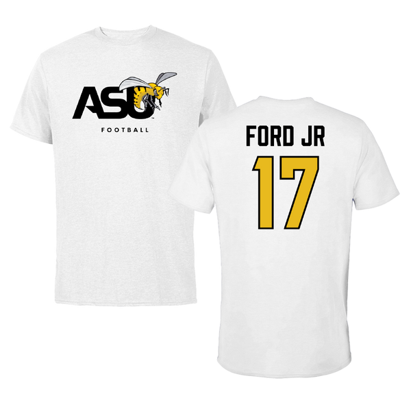 Alabama State University Football White ASU Tee - #17 Aaron Ford jr