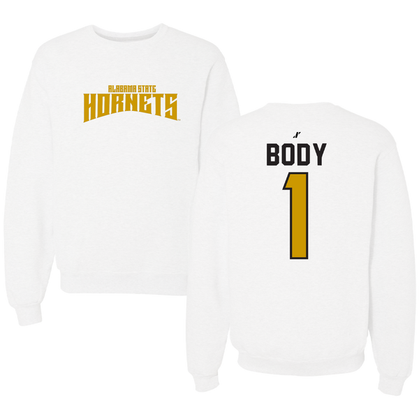 Alabama State University Football White Classic Crewneck - #1 Andrew Body