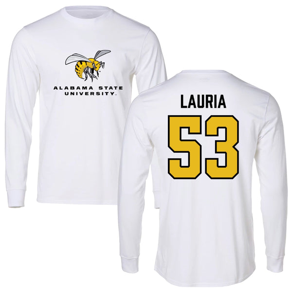 Alabama State University Football White Block Long Sleeve - #53 Thomas Lauria