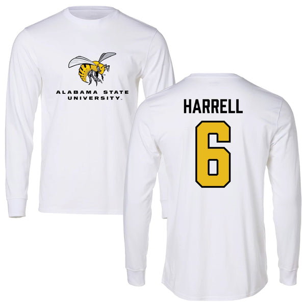 Alabama State University Football White Block Long Sleeve - #6 Ajai Harrell