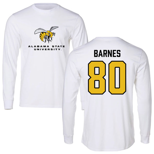 Alabama State University Football White Block Long Sleeve - #80 Khayman Barnes