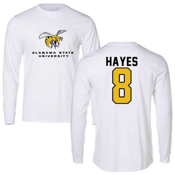Alabama State University Football White Block Long Sleeve - #8 James Hayes