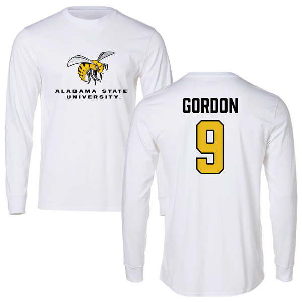 Alabama State University Football White Block Long Sleeve - #9 Cameron Gordon