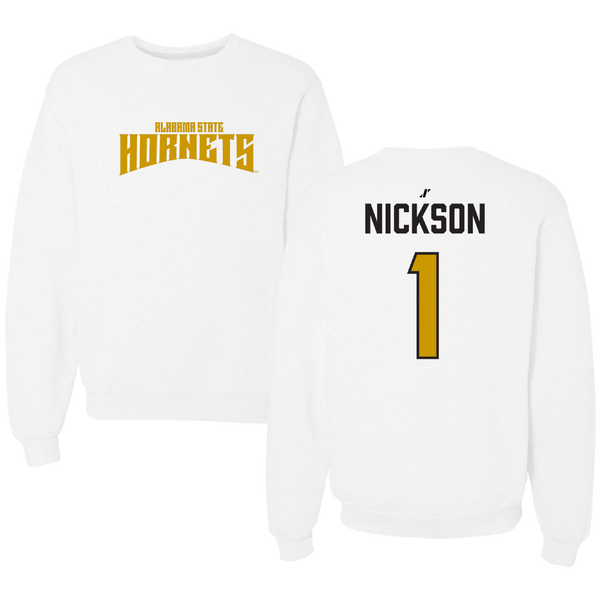 Alabama State University Football White Classic Crewneck - #1 Willie Nickson