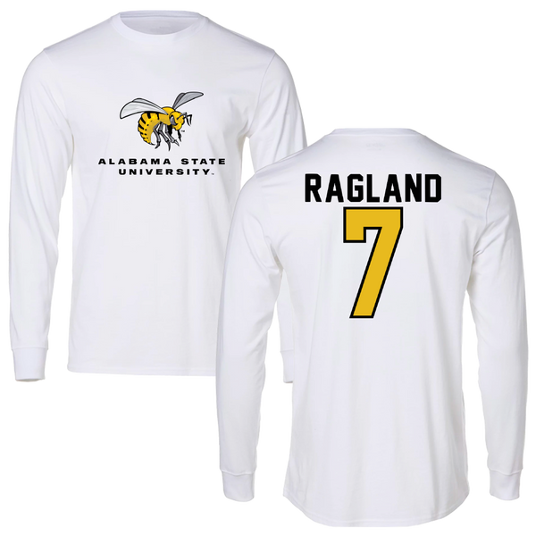 Alabama State University Football White Block Long Sleeve - #7 Braylen Ragland