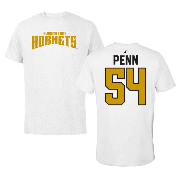 Alabama State University Football White Classic Performance Tee - #54 Dezmond Penn