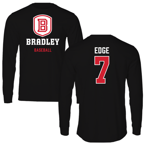 Bradley University Baseball Black Shield Long Sleeve - #7 Anthony Edge