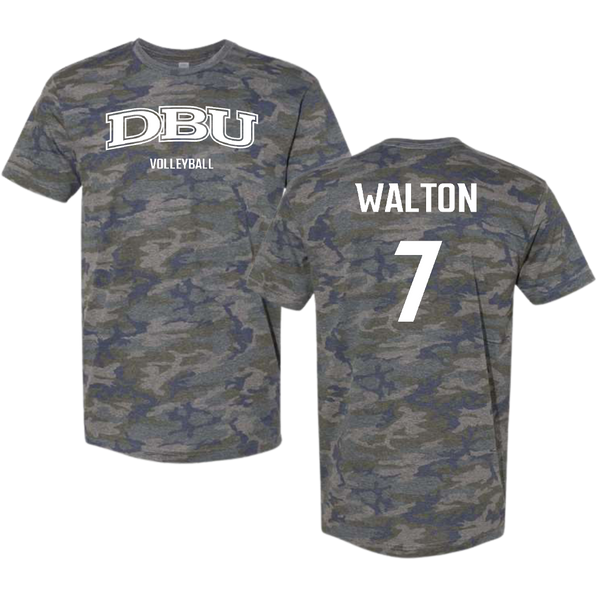 Dallas Baptist University Volleyball (W) Vintage Camo Tee - #7 Aryn Walton