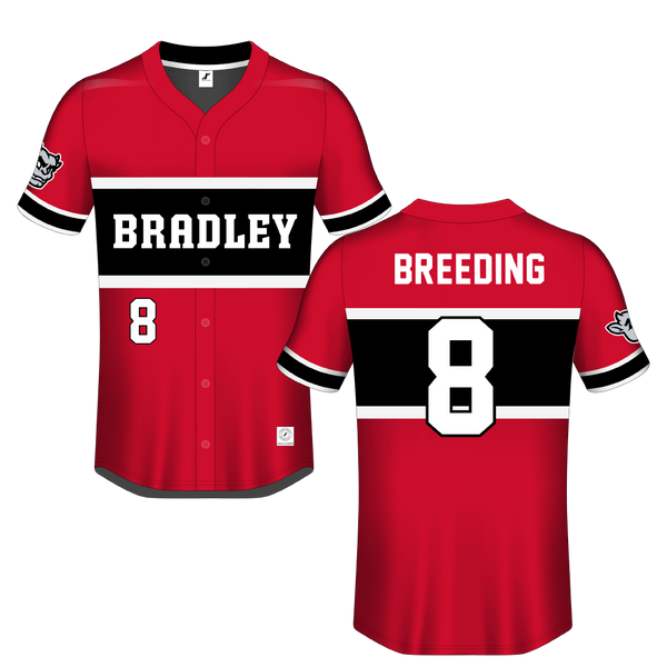 Bradley University Red Button-Down Jersey - #8 Ashley Breeding