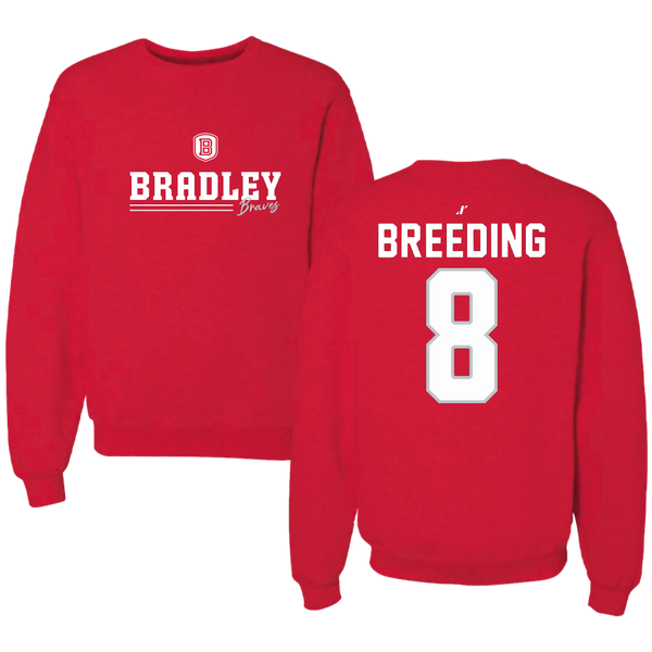 Bradley University Softball Red General Crewneck - #8 Ashley Breeding