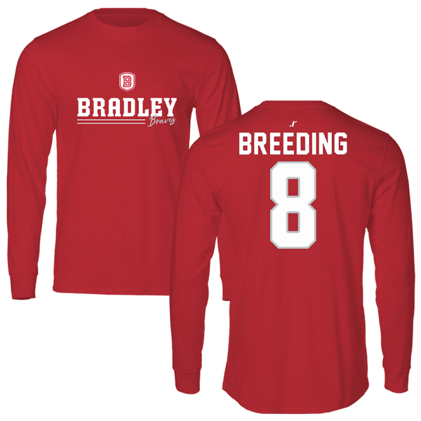 Bradley University Softball Red General Long Sleeve - #8 Ashley Breeding