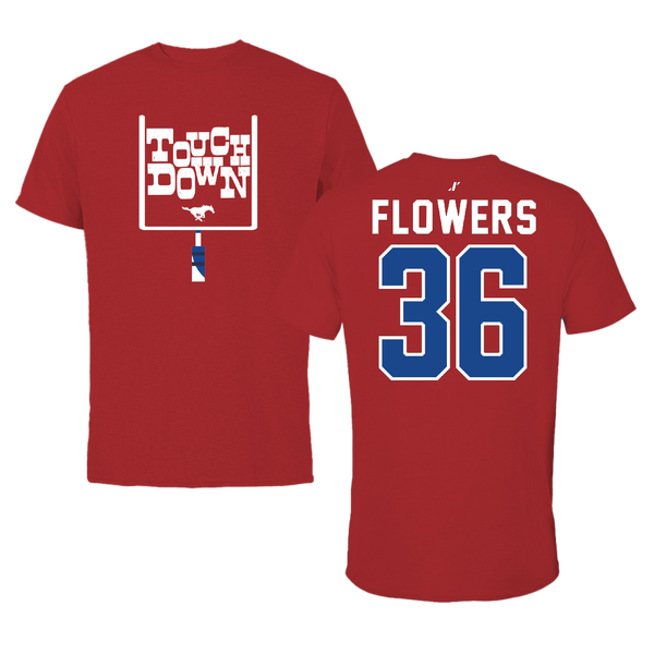 Southern Methodist University Football Canvas Red Touchdown Tee - #36 Braeden Flowers