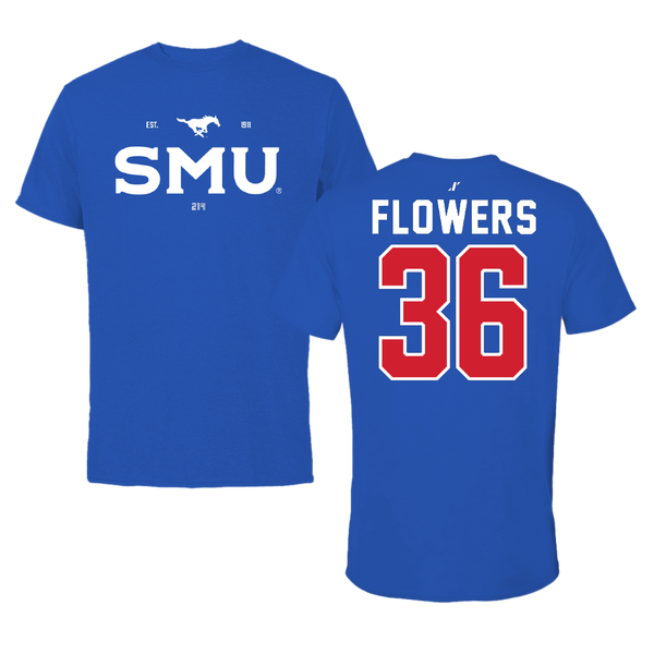 Southern Methodist University Football Blue Gameday Tee - #36 Braeden Flowers