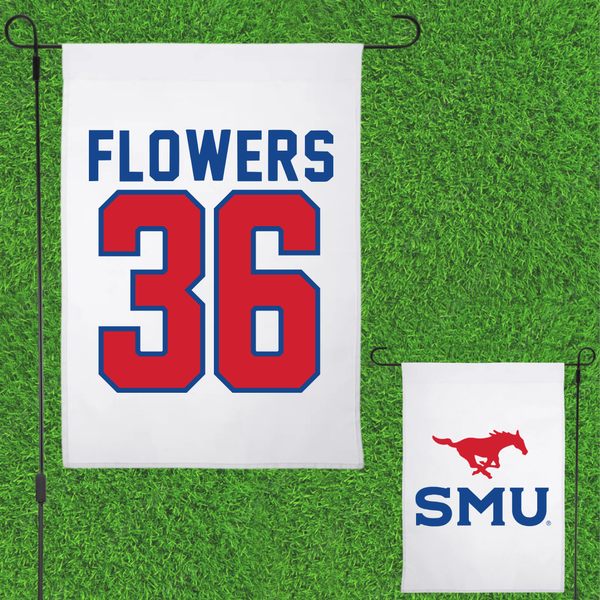 Southern Methodist University Football White Garden Flag - #36 Braeden Flowers