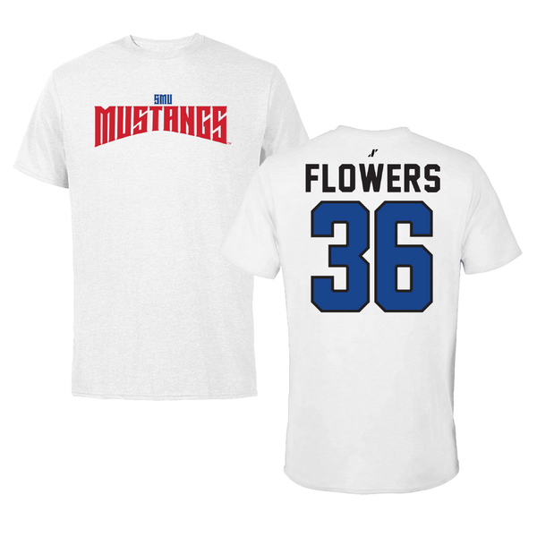 Southern Methodist University Football White Tee - #36 Braeden Flowers