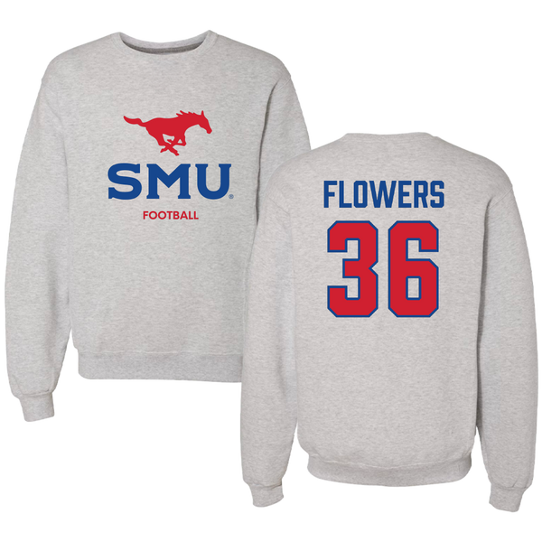 Southern Methodist University Football Light Gray Crewneck - #36 Braeden Flowers