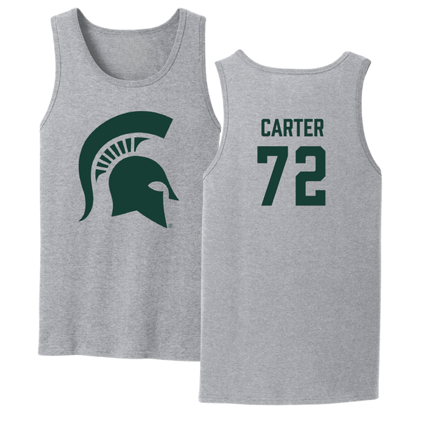 Michigan State University Football Sport Gray Tank Top - #72 Caleb Carter