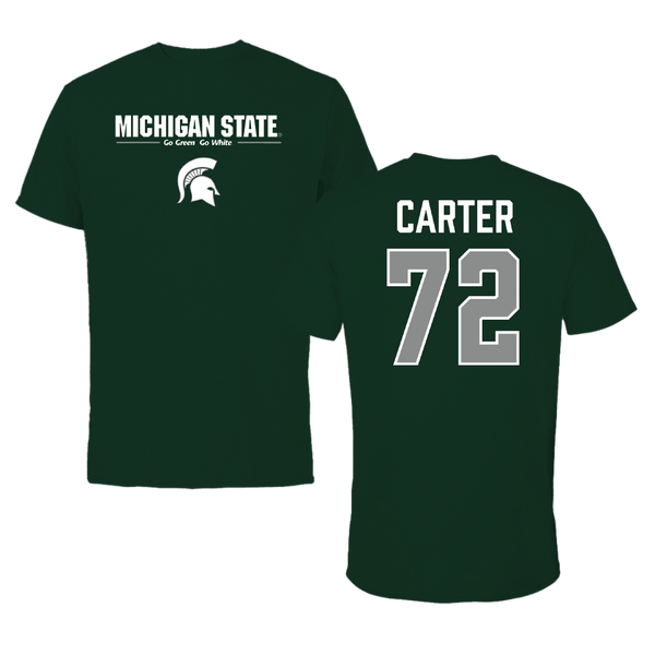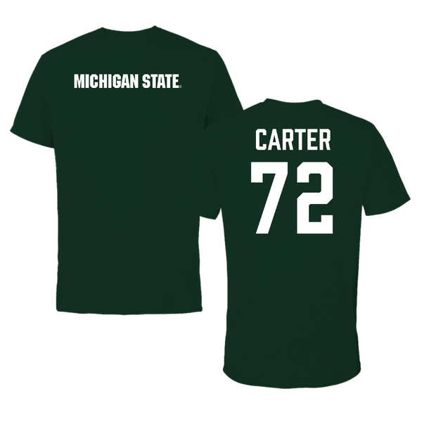 Michigan State University Football Forest Green Tee - #72 Caleb Carter