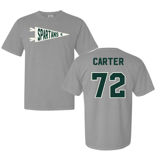 Michigan State University Football Light Gray Pennant Comfort Colors Tee - #72 Caleb Carter