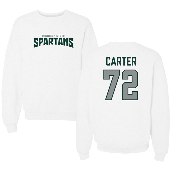Michigan State University Football White Classic Crewneck - #72 Caleb Carter