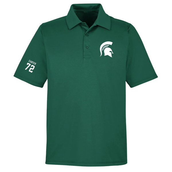 Michigan State University Football Forest Green Polo - #72 Caleb Carter