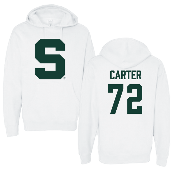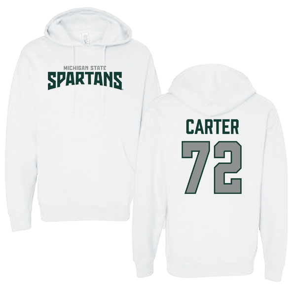 Michigan State University Football White Classic Hoodie - #72 Caleb Carter