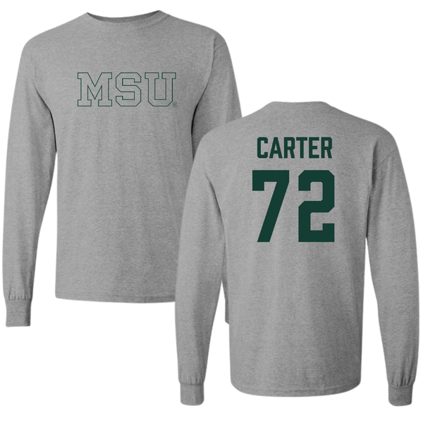 Michigan State University Football Sport Gray Long Sleeve - #72 Caleb Carter