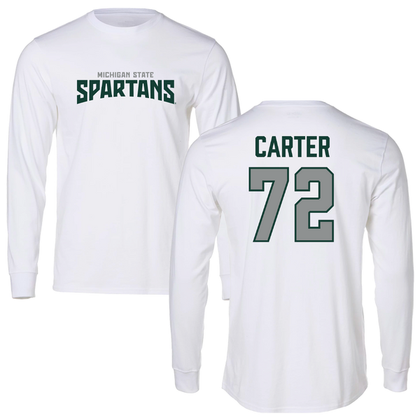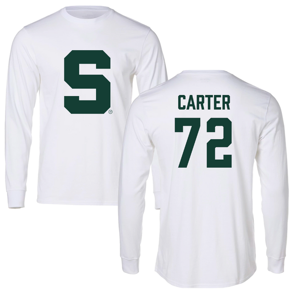Michigan State University Football White Long Sleeve - #72 Caleb Carter