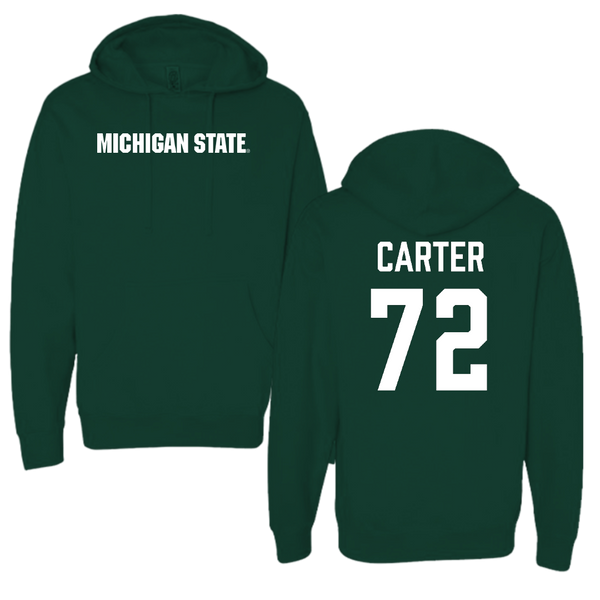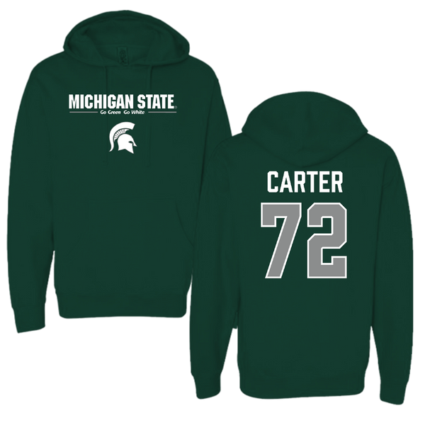 Michigan State University Football Forest Green Hoodie - #72 Caleb Carter