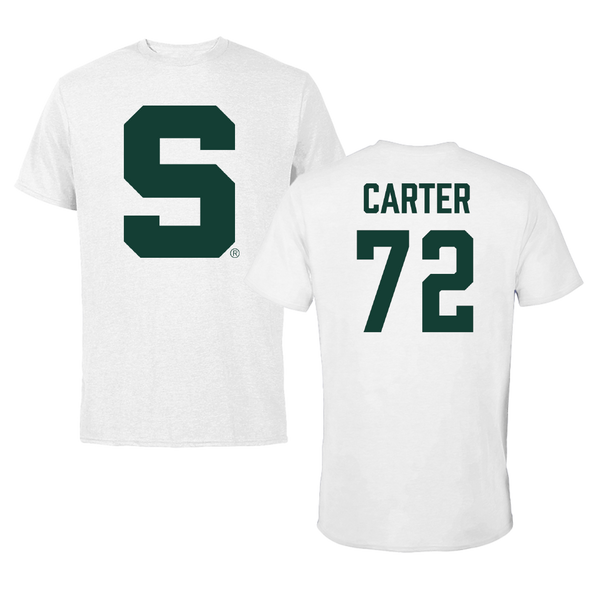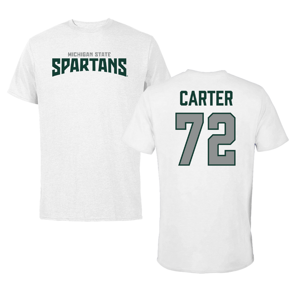 Michigan State University Football White Classic Tee - #72 Caleb Carter