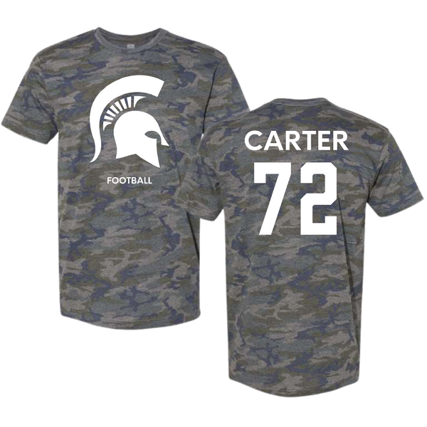 Michigan State University Football Vintage Camo Tee - #72 Caleb Carter