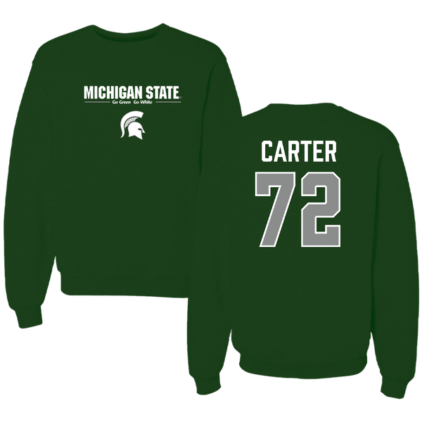 Michigan State University Football Forest Green Crewneck - #72 Caleb Carter