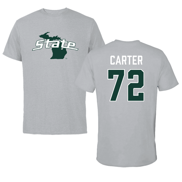 Michigan State University Football Sport Gray State Tee - #72 Caleb Carter