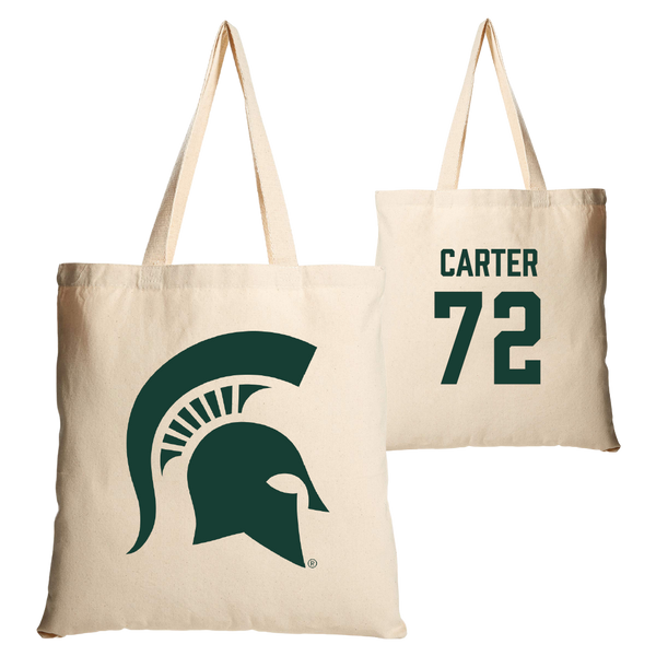 Michigan State University Football Tan Canvas Tote Bag - #72 Caleb Carter