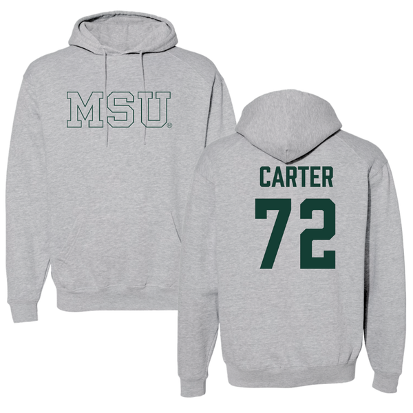 Michigan State University Football Sport Gray Hoodie - #72 Caleb Carter