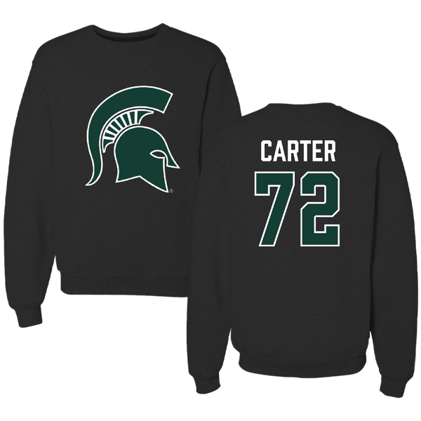 Michigan State University Football Black Crewneck - #72 Caleb Carter