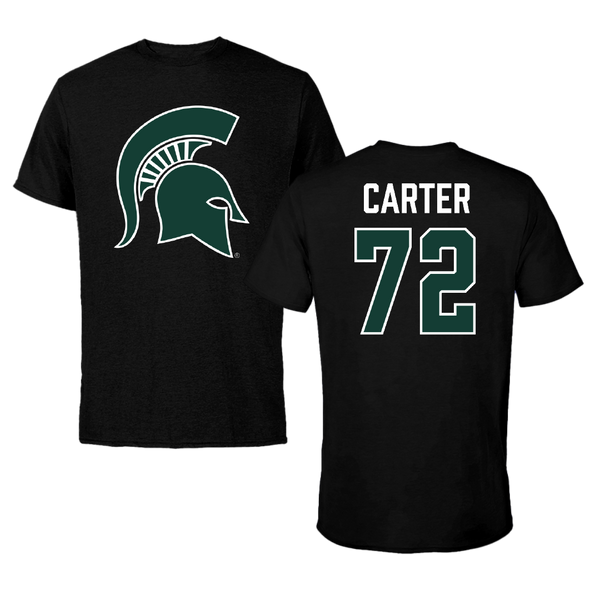 Michigan State University Football Black Tee - #72 Caleb Carter