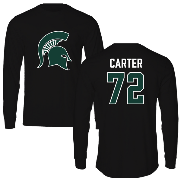 Michigan State University Football Black Long Sleeve - #72 Caleb Carter
