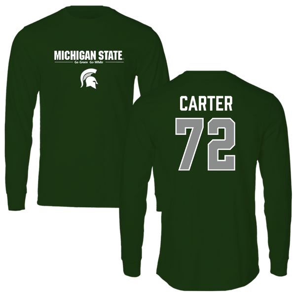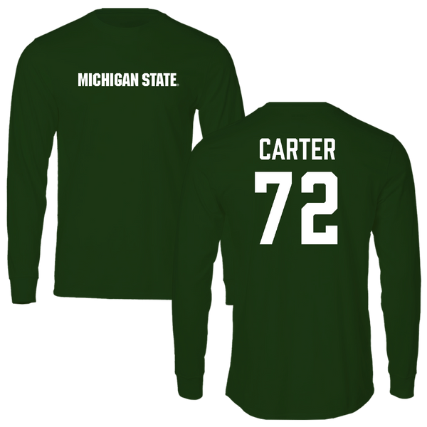 Michigan State University Football Forest Green Long Sleeve - #72 Caleb Carter