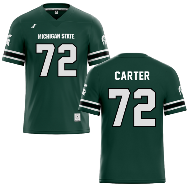 Michigan State University Green Football Jersey - #72 Caleb Carter