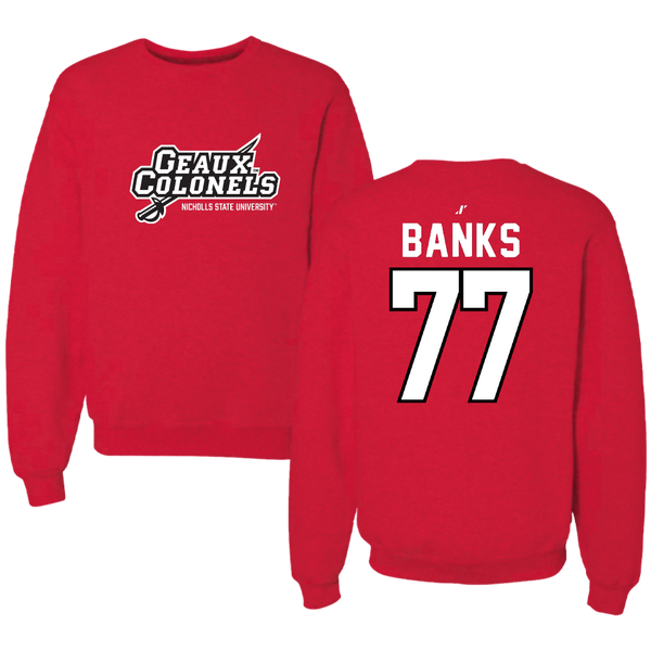 Nicholls State University Football Red General Crewneck - #77 Cam Banks