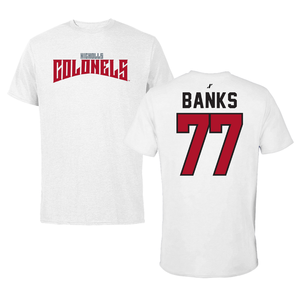 Nicholls State University Football White Classic Tee - #77 Cam Banks