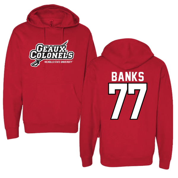 Nicholls State University Football Red Hoodie - #77 Cam Banks