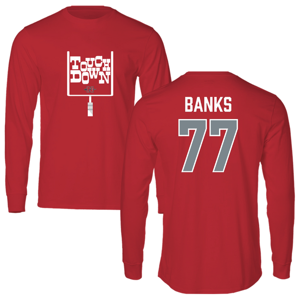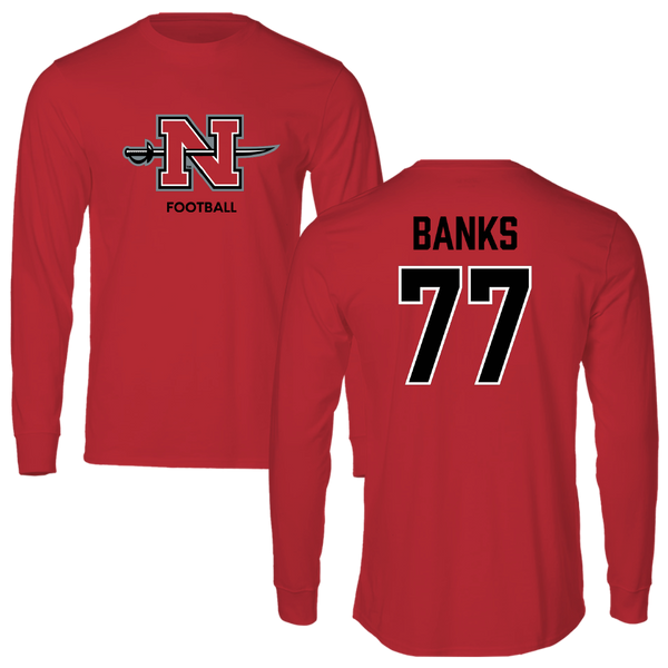 Nicholls State University Football Red Touchdown Long Sleeve - #77 Cam Banks