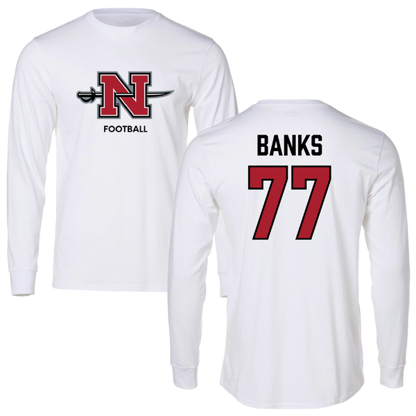 Nicholls State University Football White Classic Long Sleeve - #77 Cam Banks