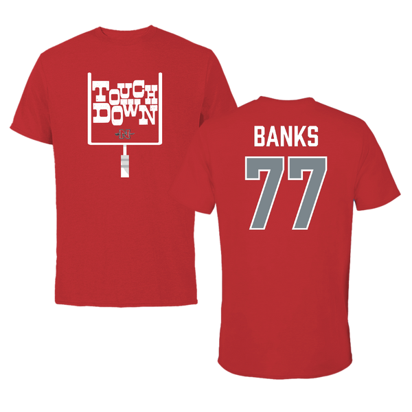 Nicholls State University Football Red Touchdown Tee - #77 Cam Banks