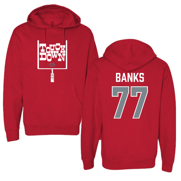 Nicholls State University Football Red Touchdown Hoodie - #77 Cam Banks