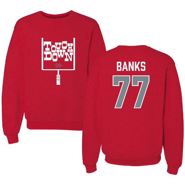 Nicholls State University Football Red Touchdown Crewneck - #77 Cam Banks