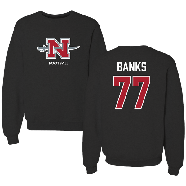 Nicholls State University Football Black Mascot Crewneck - #77 Cam Banks